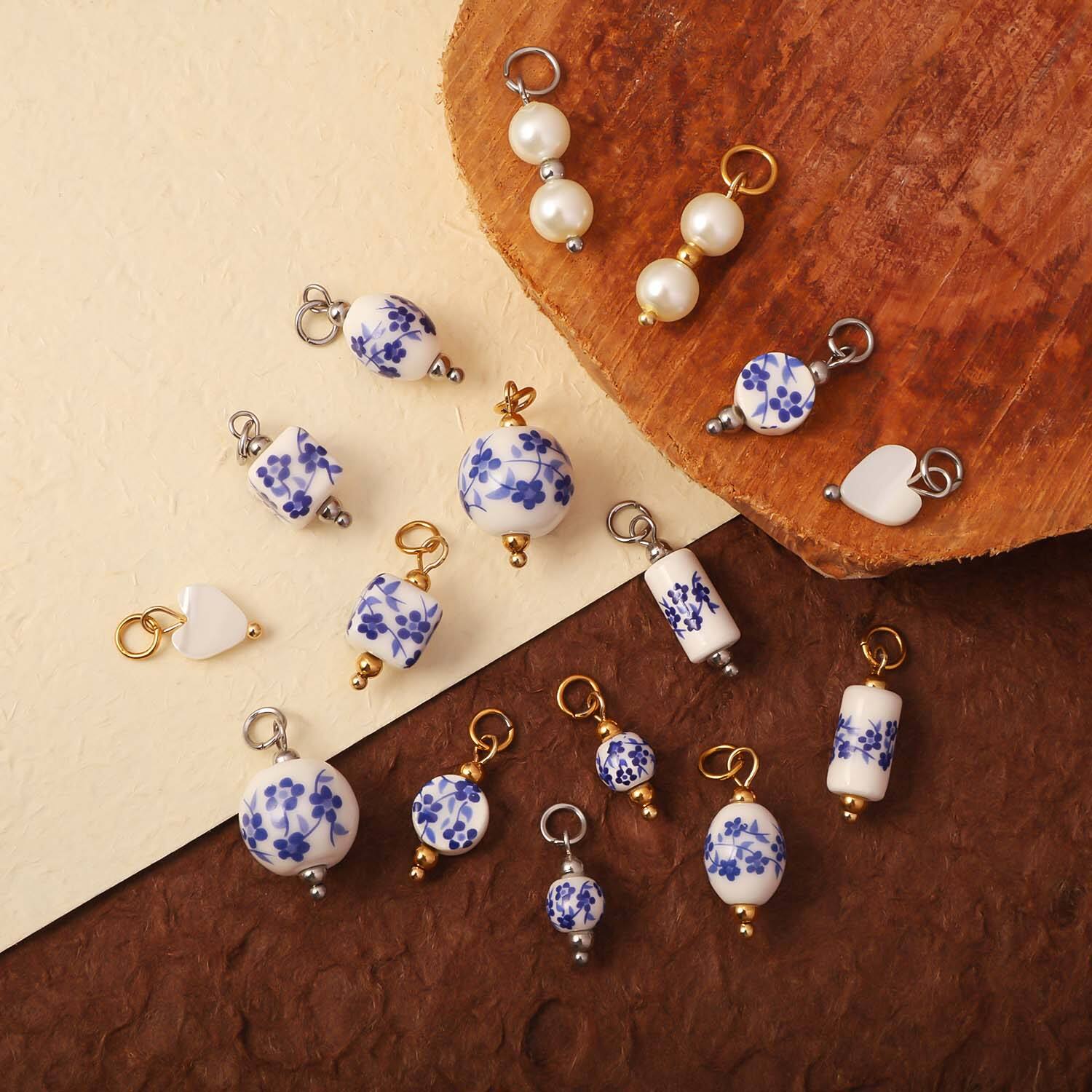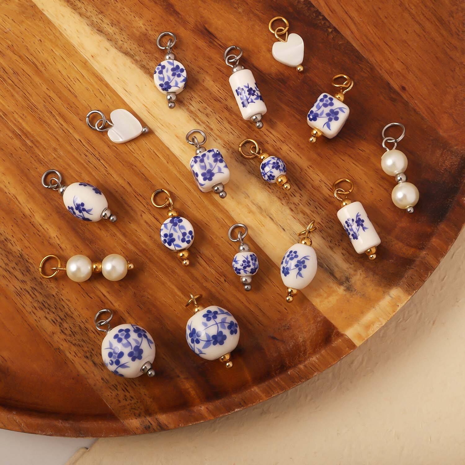 This series is a collection of blue-and-white porcelain style ceramic pendants.