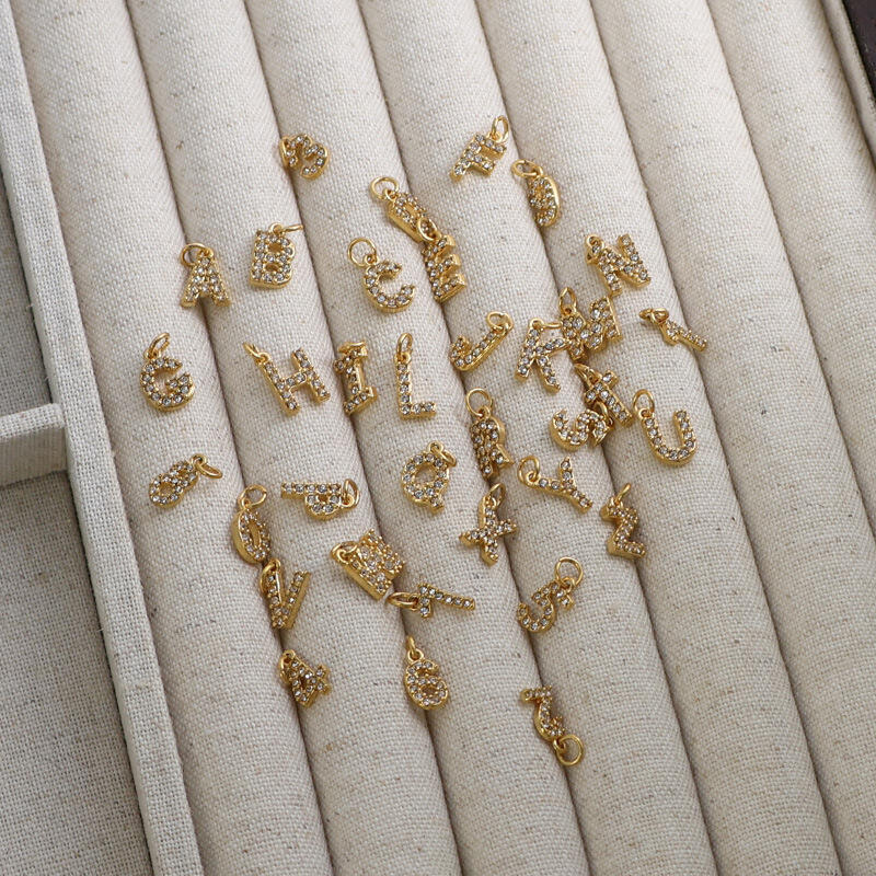 Pangalan ng produkto : Pendant na May Hugis ng Tao at Alphabet na Gintong Planted na May Rhinestone na Charm