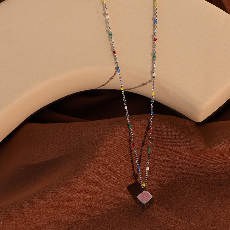 Dây xích mảnh + các hạt màu được sắp xếp cách đều, phong cách Y2K, vẻ ngoài nữ tính, thu hút mạnh về mặt thị giác, dễ sử dụng làm hình ảnh chủ đạo.